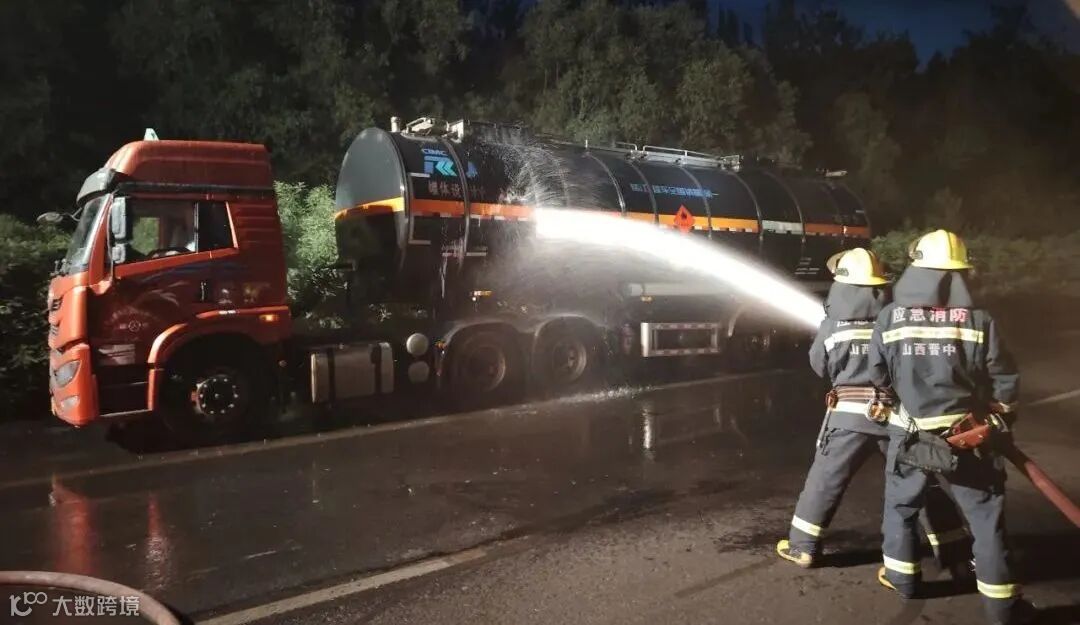 事件:6月13日,灵石县消防救援大队接110指挥中心调度:灵石县两渡镇花苑路段,一辆沥青罐车泄漏,情况紧急。