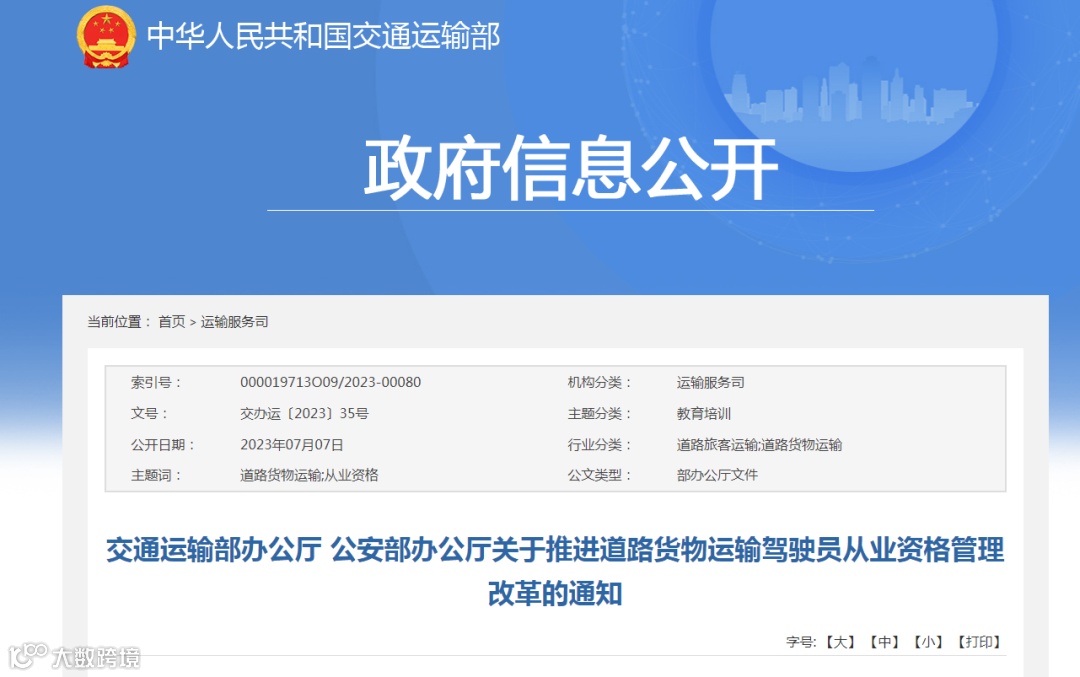 2020年7月,《国务院办公厅关于进一步优化营商环境更好服务市场主体的实施意见》(国办发〔2020〕24号)明确,推动取消除道路危险货物运输以外的道路货物运输驾驶员从业资格考试。同年12月,《交通运输部办公厅关于做好道路货物运输驾驶员从业资格考试制度改革有关工作的通知》(交办运〔2020〕66号)明确,自2021年3月1日起,不得再组织开展除道路危险货物运输以外的道路货物运输驾驶员从业资格考试。驾驶员凭《结业证书》和机动车驾驶证等向交通运输主管部门申领道路货物运输驾驶员从业资格证件。