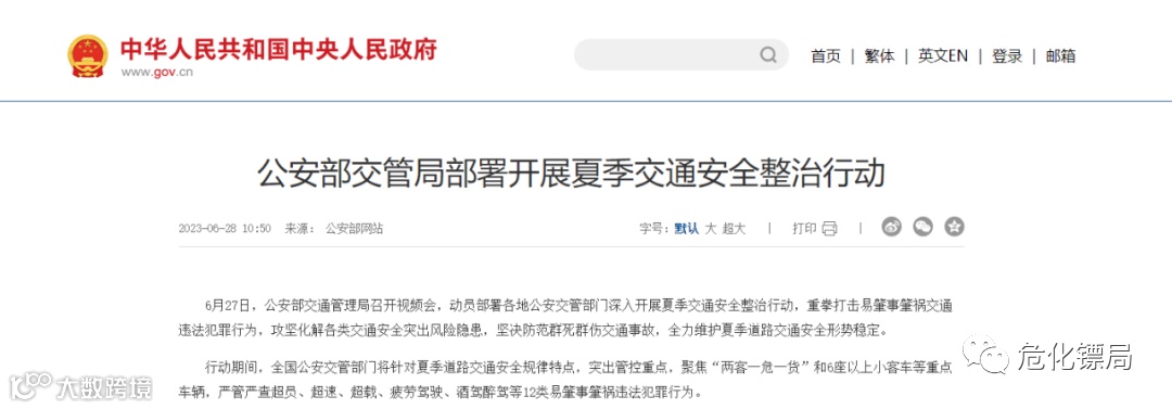 近日,公安部交通管理局动员部署各地深入开展夏季交通安全整治行动,严管危化品运输等重点车辆,严查超速、超载、闯禁等违法违规行为,为期整治3个月,目前多地已开始行动。