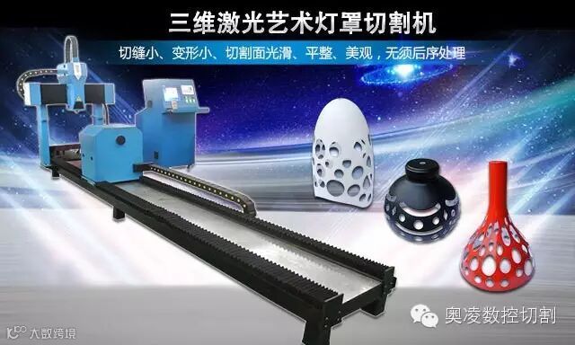 今天广州奥凌生产三维激光艺术灯罩切割机,采用三维图形切割,适用于各种艺术灯罩加工方便用户开发新产品切割速度快、工作效率高、稳定性能高切缝小、变形小、切割面光滑、平整、美观,无须后序处理;广泛应用于:厨房电器,灯饰五金,工艺礼品,广告标牌。
