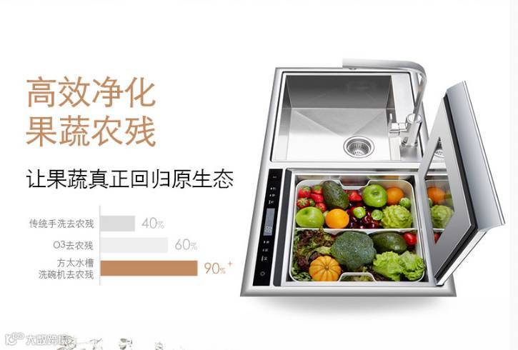 针对备受关注的蔬果农残问题,方太水槽洗碗机使用高频超声技术,配合漩涡水流,以纯物理原理将农药去除率提升到90%以上,使果蔬食用更安全。而且它的一次清洗过程大约在28分钟左右,比传统洗碗机快一倍以上,每次净洗仅需3瓶可乐瓶大小的水、0.32度电,省电省水真的看得见。