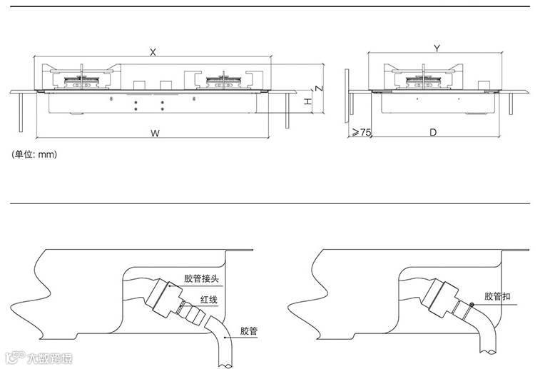 橱柜的宽度不能小于燃气灶的外型尺寸的标称宽度。