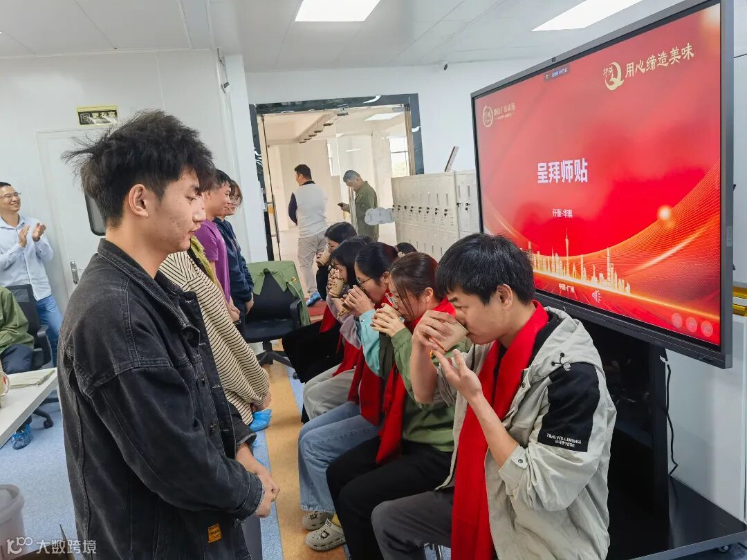 仟壹-华琪公司"师徒结对"拜师仪式,6名实习生现场拜师。