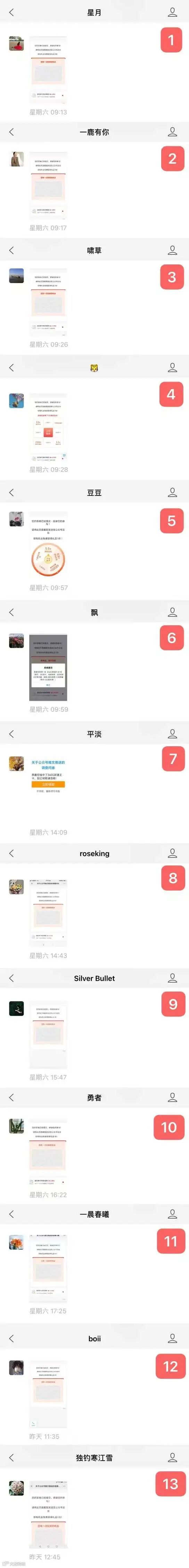 以下是每一位粉丝发送截图的顺序