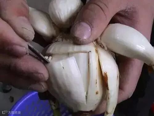b、如果不能直接切下,可以一片一片剥开鳞片。