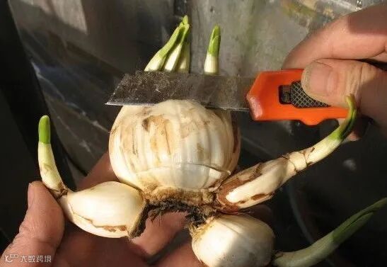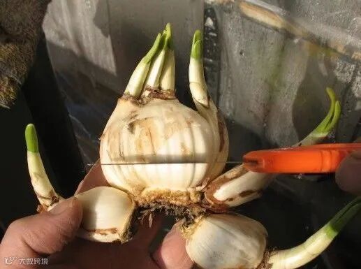 a、选择个体大的、形状稍扁的,质感稍硬的,表皮纵脉条纹距离较宽的,深褐色的、包膜完好的、色泽明亮的,主球旁边有对称的小球茎,没有枯烂、虫害的痕迹。