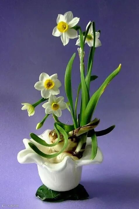 刻后将刻的一面朝下放置清水中浸泡2-3天,然后洗净切口处流出的粘液,覆盖一层吸水棉或纸巾,再置浅水盆中养护。一般经雕刻过的水仙,开花提早,花期缩短。