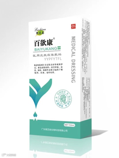 医用液体敷料属于一类医疗器械,可以对创面创口形成膜状保护层,起到物理屏障作用。而“百欲康”医用皮肤敷料,同时兼具修复、保湿、促进胶原蛋白合成的作用,使用方便,一喷即可。