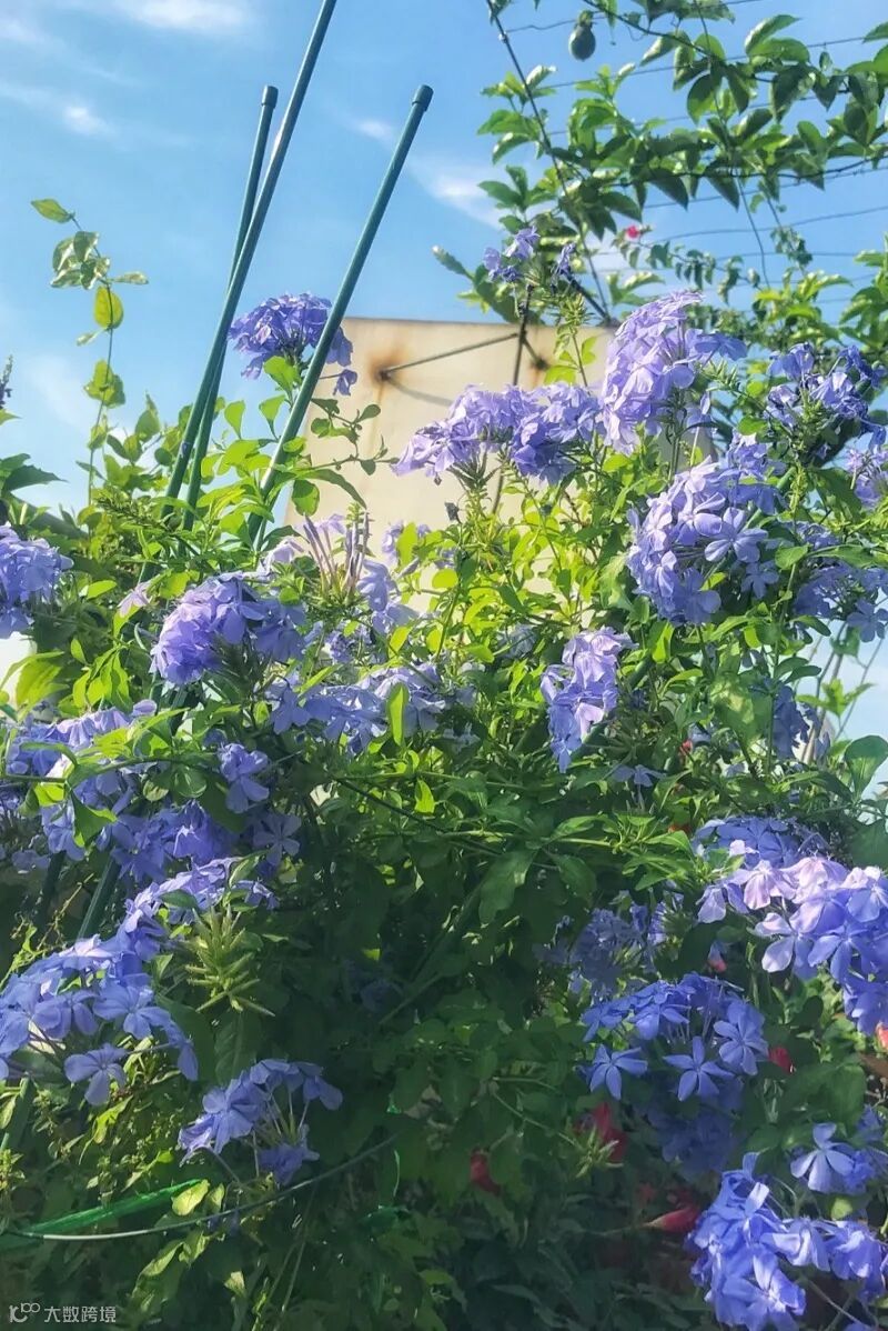 2、中剪:对植株进行打顶处理,但是要留下一些健康的枝条,比如像养护月季花、三角梅、蓝雪花。