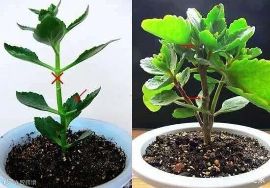 砍头:和打顶摘心大致相同,常用于多肉植物,把它的杆子保留底部的一部分,其余部分剪掉,剪掉以后底下的叶片不需要摘掉,在伤口上涂抹上一些杀菌剂,加快伤口愈合,之后叶片和茎杆连着的地方就会快速的长出多个小侧芽来。