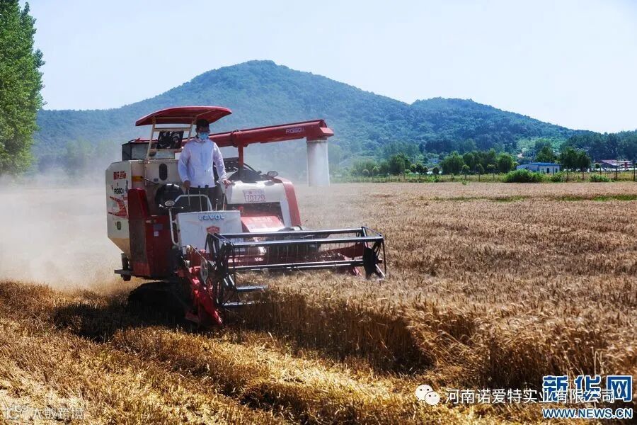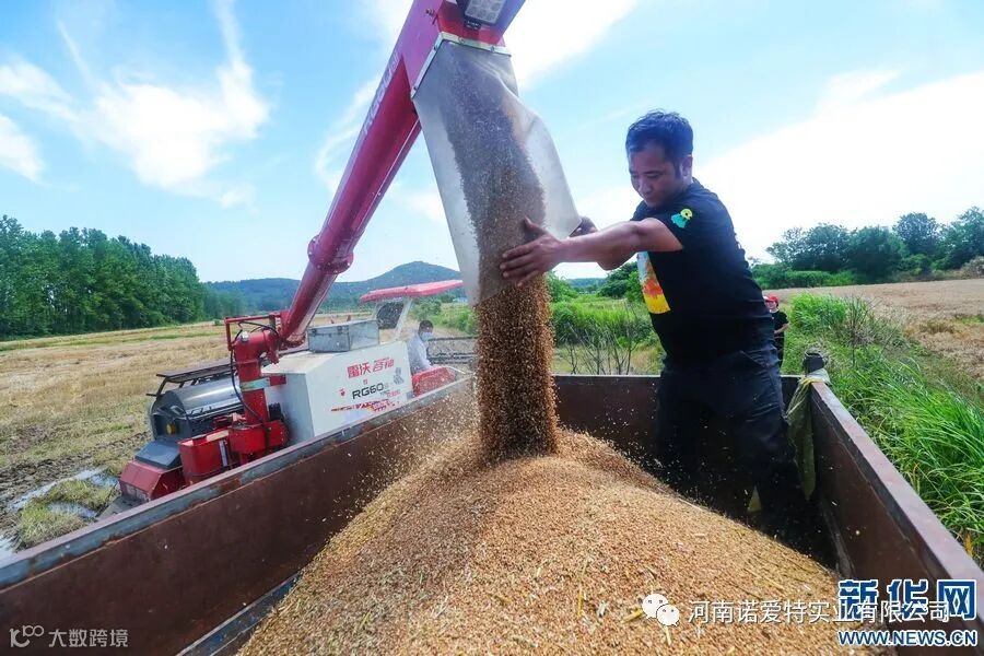 5月30日,河南省信阳市光山县仙居乡张湾村的麦田里,一名农机手正在抢收小麦。