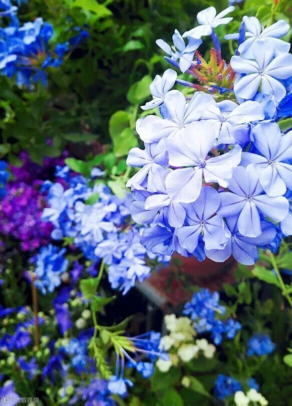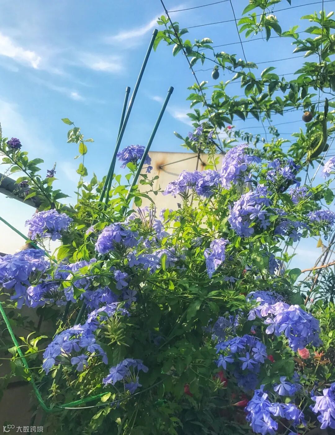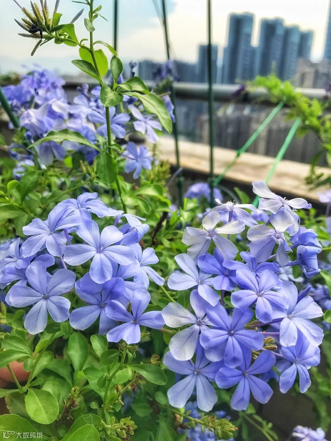 蓝雪花,是白花丹科、蓝雪花属植物。它喜温暖湿润,阳光充足的环境,所以耐热,不耐寒冷,适合放在家里阳台、花园盆栽种植,它的花期大约在5-9月,在炎热的夏季带给你一丝清凉感。