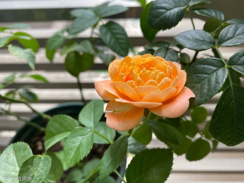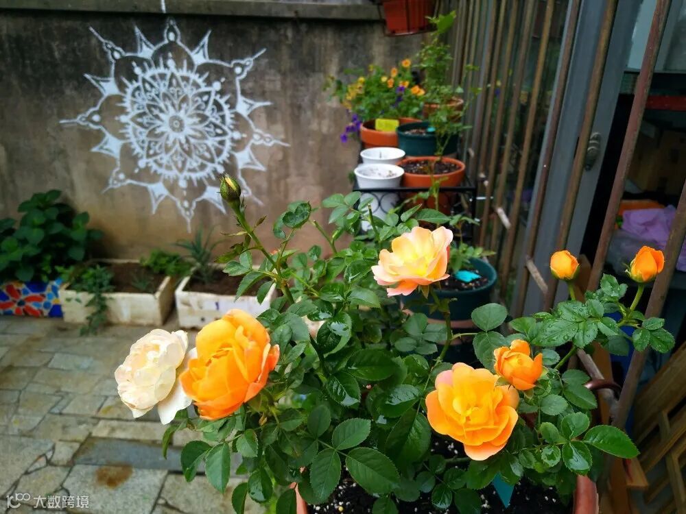 充满朝气的橘黄色花朵,清淡的花香还有绿油油的叶片,再加上果汁阳台比其他常规月季好管理好养活,实在是家庭阳台的优选主角。