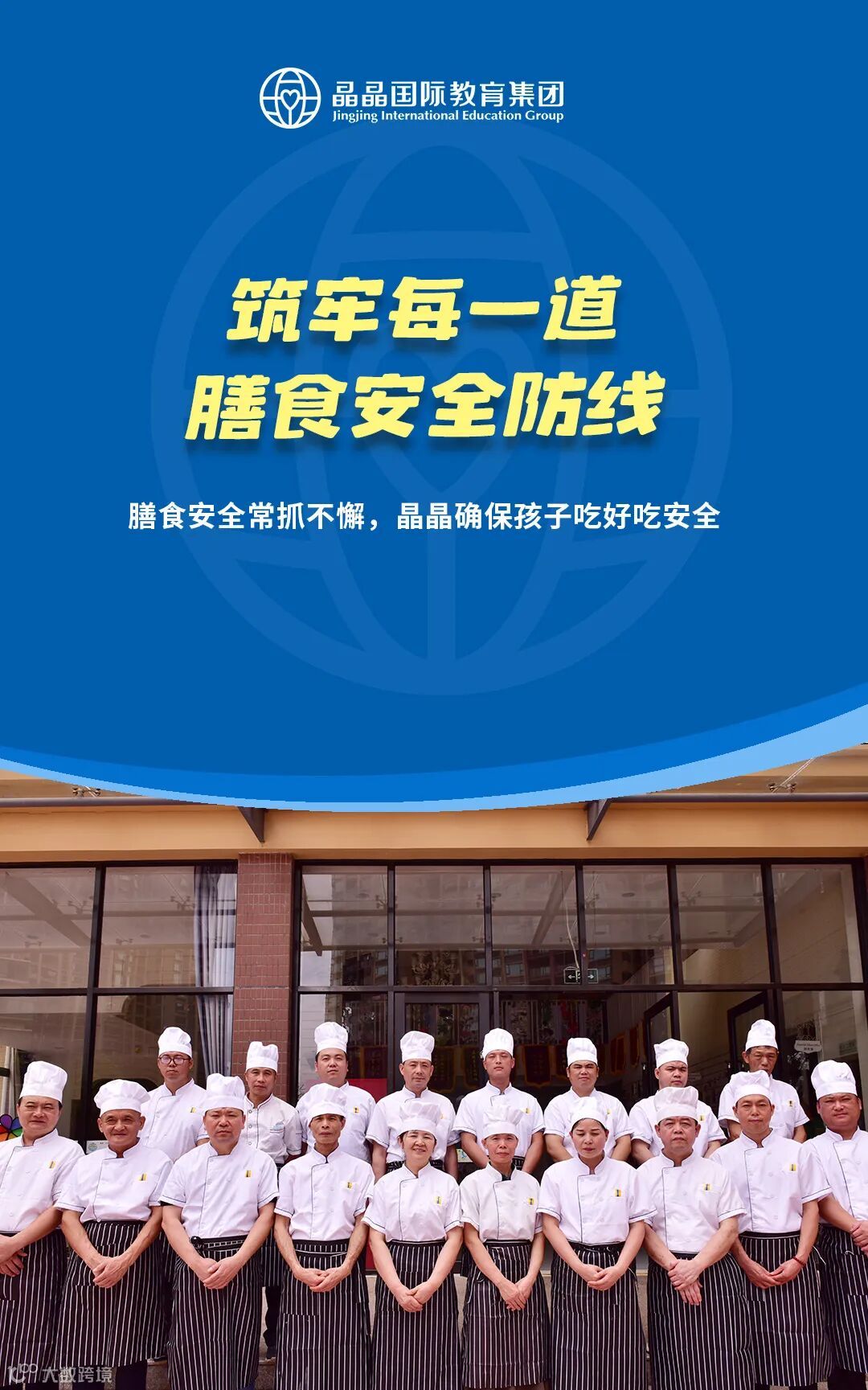 膳食安全无小事。晶晶国际教育集团各园在此承诺:用最严标准确保膳食安全,守护每一个晶晶幼儿安全健康。让每一个孩子在晶晶幼儿园健康、快乐成长。