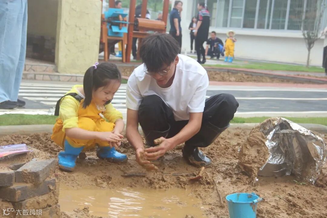 在小猪泥巴池,孩子们可以肆意享受踩泥巴的野趣,这里运用各种高低结构材料和泥巴的结合,探索泥巴的不同玩法。跳下去飞溅起来的泥点子和小朋友们咧嘴大笑的样子,都成了家长镜头下最美的瞬间。
