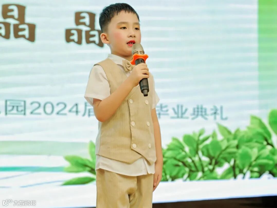 晶晶幼儿代表用稚嫩的语言,讲述着自己对幼儿时光的留念,对小伙伴的不舍,对老师的感谢,对未来的期盼。