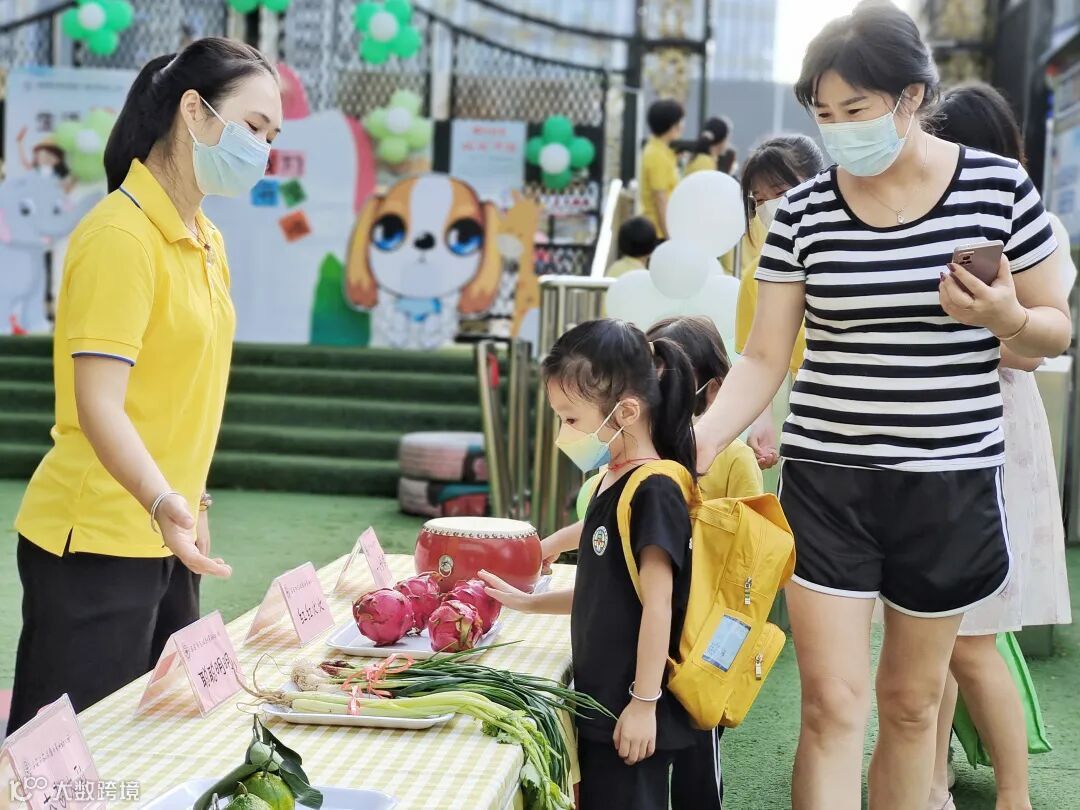 孩子们摸摸火龙果、桔子、葱,祝福大家红红火火、大吉大利、聪明健康。
