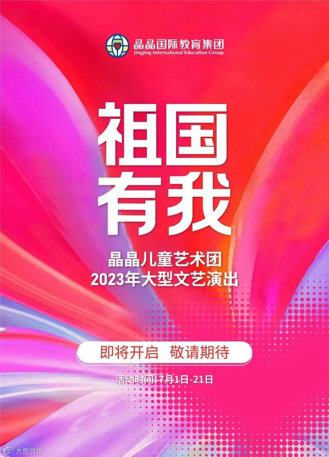 本次大型演出主题为《祖国有我》,是晶晶国际教育集团成立31年,晶晶儿童艺术团成立21年向改革开放45周年的献礼。每年7月都是晶晶艺术团的文艺演出季,在毕业收获的季节,晶晶孩子们用一个个童趣、阳光、健康的作品,表达对自身成长的喜悦,传递着对美好生活的向往、对祖国的热爱。