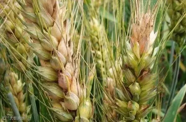 小麦赤霉病:又叫红麦头,主要分布于潮湿区域,从幼苗到抽穗都可受害,引起苗枯、茎基腐、穗腐,其中为害最严重的是穗腐。造成枯白穗、整株枯死等现象,严重影响小麦产量。可通过喷施扬彩、爱苗、秀特进行防治。