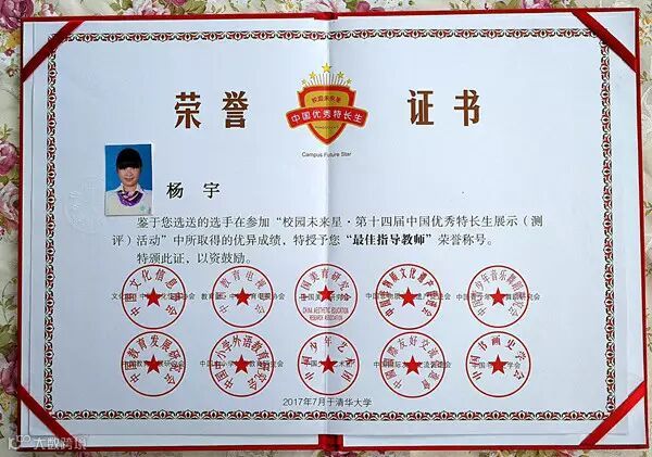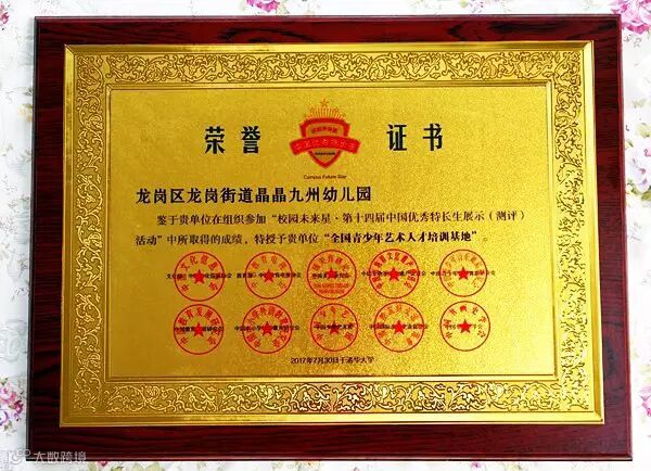 2017年7月27日-30日,“校园未来星•第十四届优秀特长生展示(测评)活动”全国总决赛在北京清华大学隆重举行。晶晶国际教育集团深圳市龙岗区晶晶九州幼儿园选送的舞蹈《鱼趣》和《时尚小鸡》喜获殊荣,问鼎桂冠。
