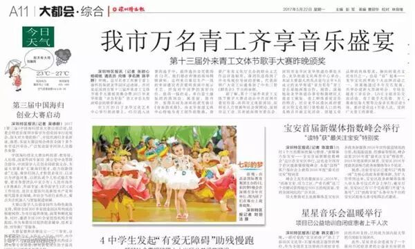 ▼深圳特区报5月22日A11大都会.综合版报道: