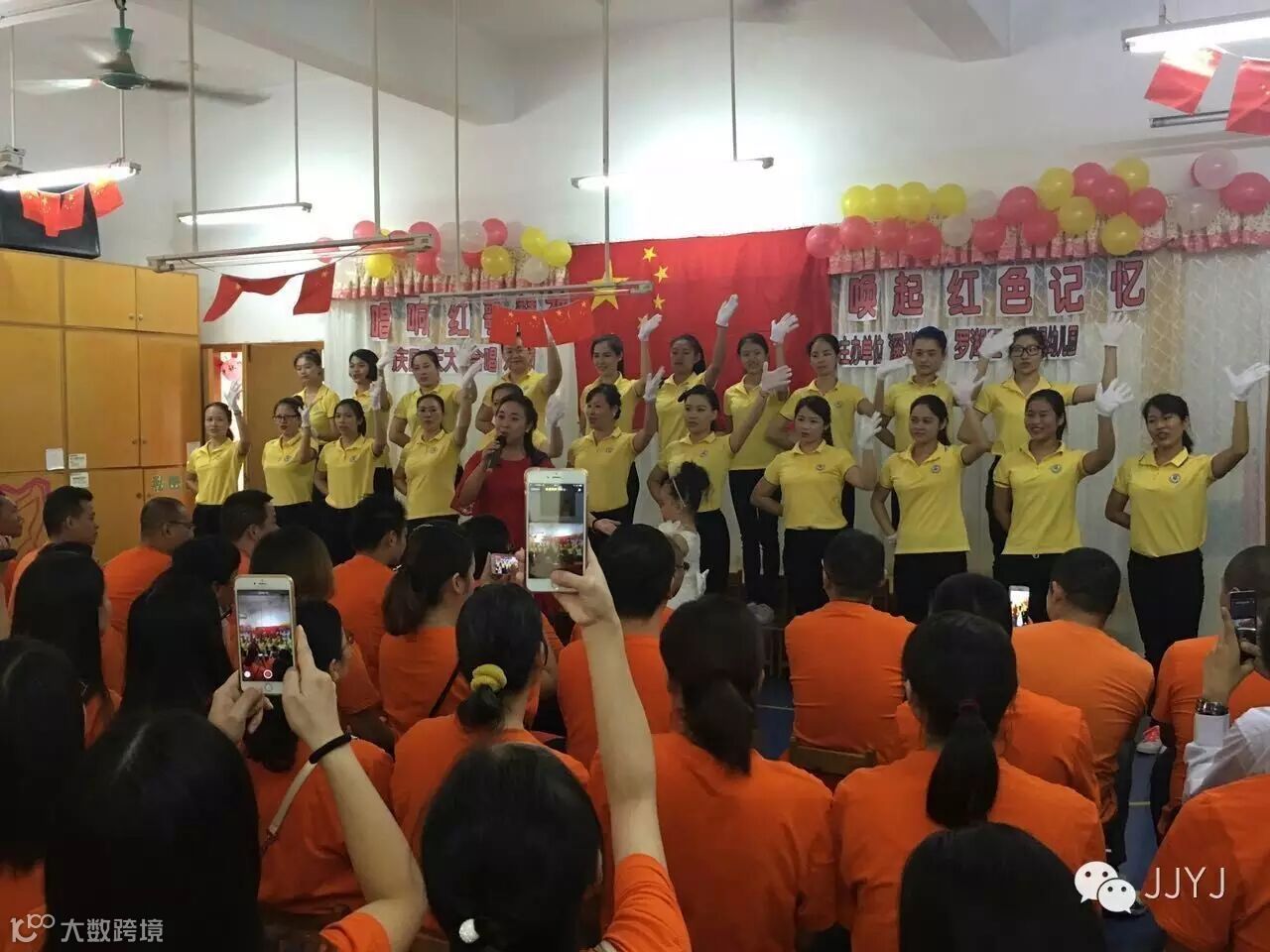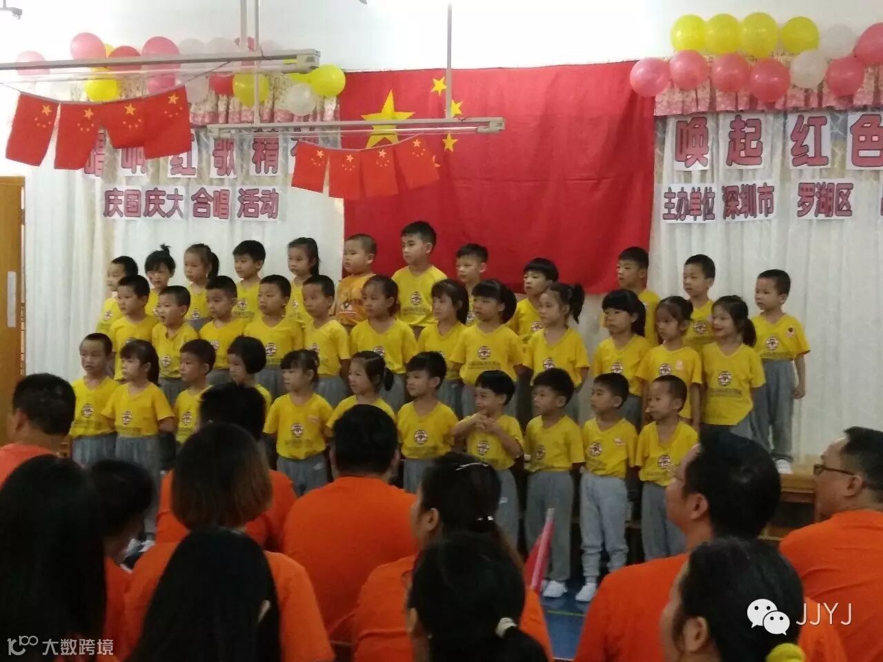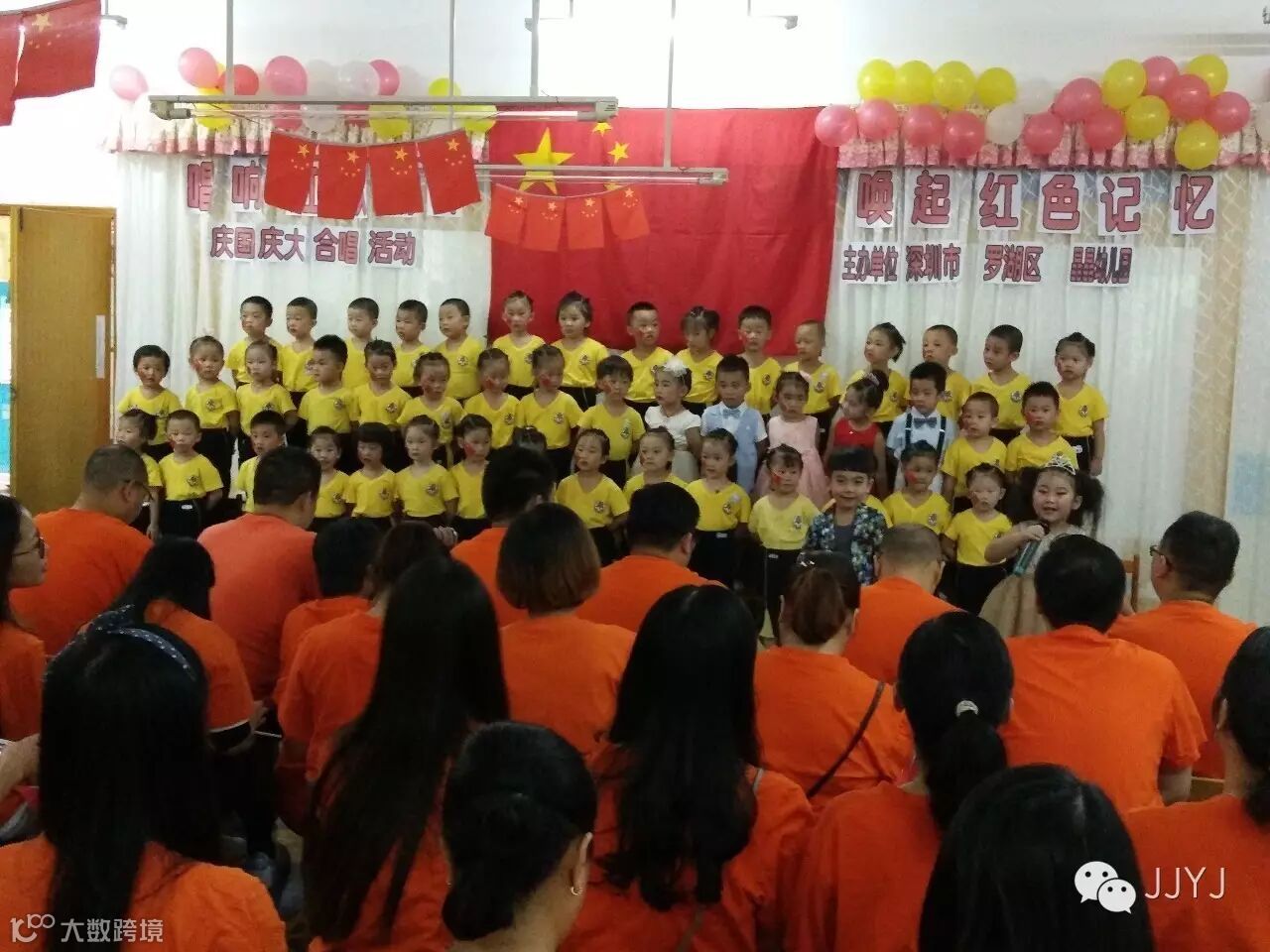 在祖国母亲生日来临之际,9月30日上午,罗湖晶晶幼儿园在园内举办了一场别开生面的幼儿、家长、老师唱红歌“唱响红歌精神,唤起红色回忆”主题的大合唱演出活动,给我们伟大的祖国母亲庆祝67周年华诞。为了能够成功举办这次红歌会活动,小朋友们和老师、家长经过了近半个月的刻苦训练,家长也担当起老师的角色,在家里和也孩子一起练唱红歌。唱出了对祖国母亲的热爱之情。