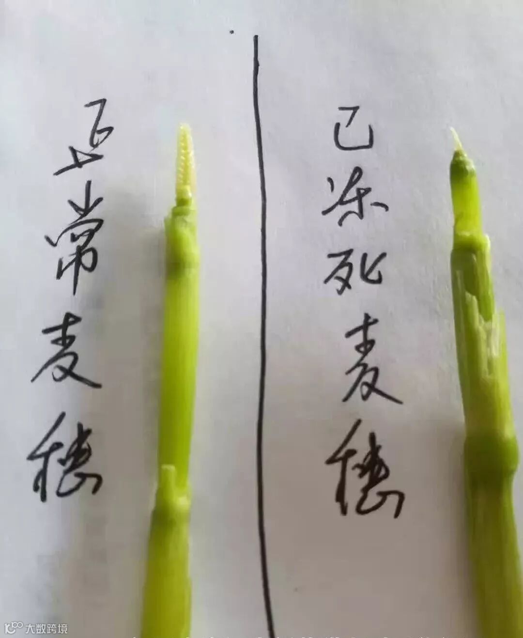 当气温低至0℃时,持续4个小时以上,幼穗就会被冻死,将来抽出的穗子就会有很多被冻坏的白穗子,导致小麦严重减产!