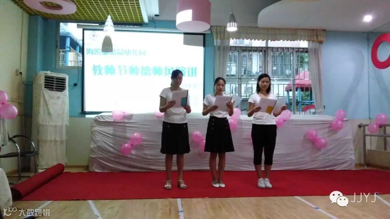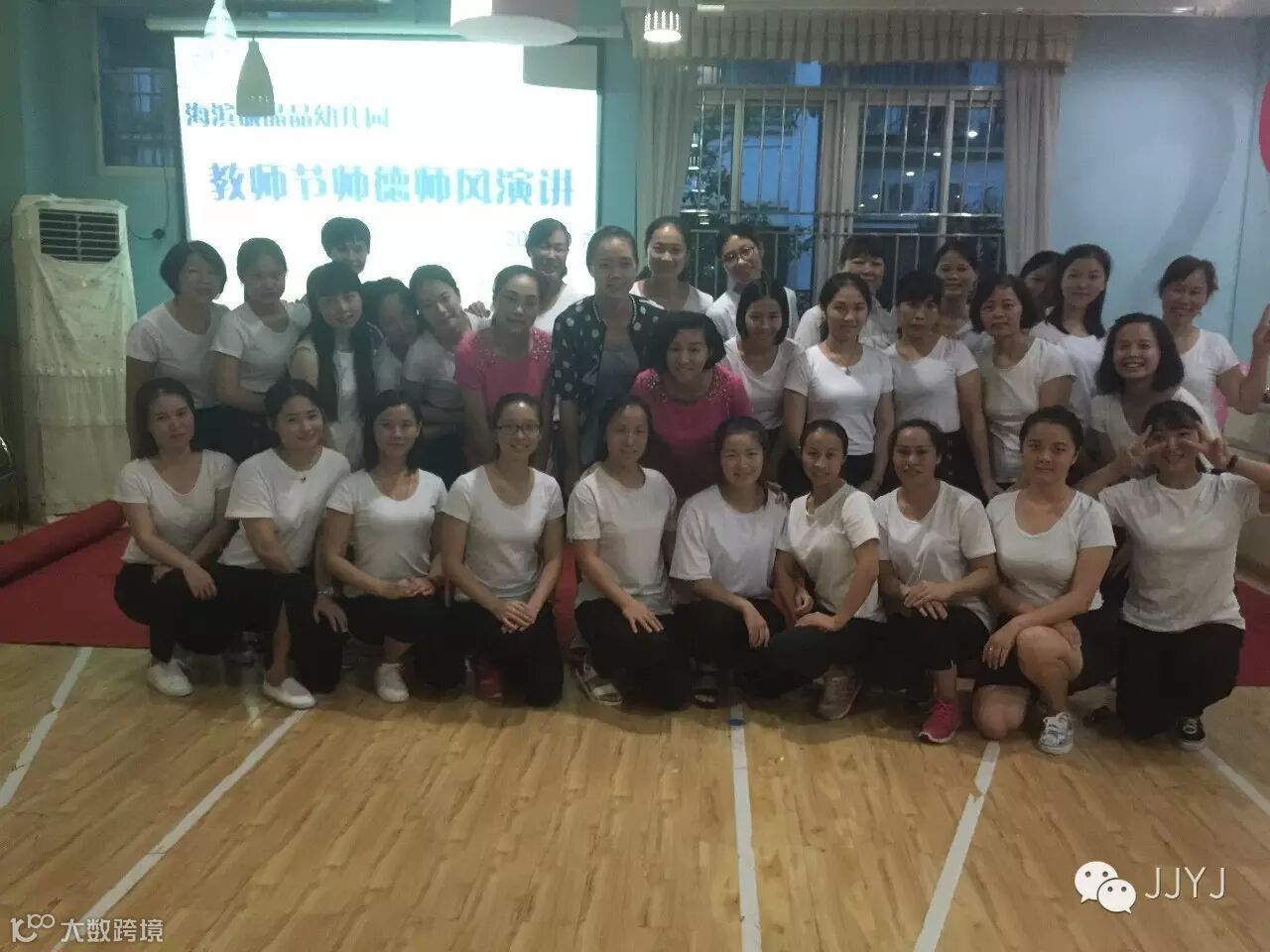 教师节即将来临,为了进一步增强我园教职工爱岗敬业,教书育人的职业责任感,提高教职工的素质,展示教师风采,海滨城晶晶幼儿园在9月8日晚举行了“教师节师德师风”演讲活动。