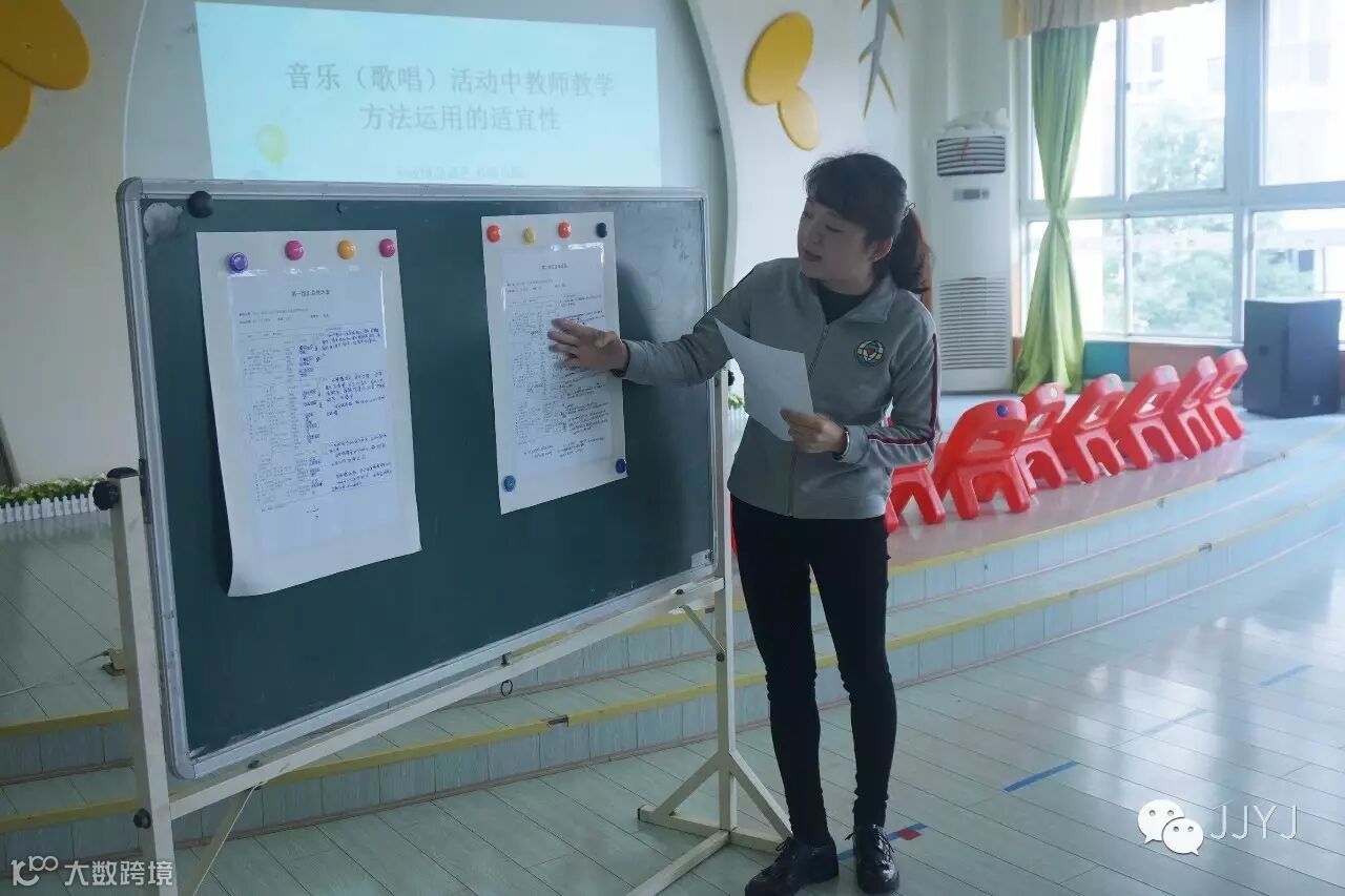 在教研过程中,老师们“一对一”的对幼儿进行观察、分析,并记录量表,通过量表上的数据探讨教学方法的适宜性。整个教研氛围浓厚,园长、老师们都以饱满的热情参与研讨,各抒己见。