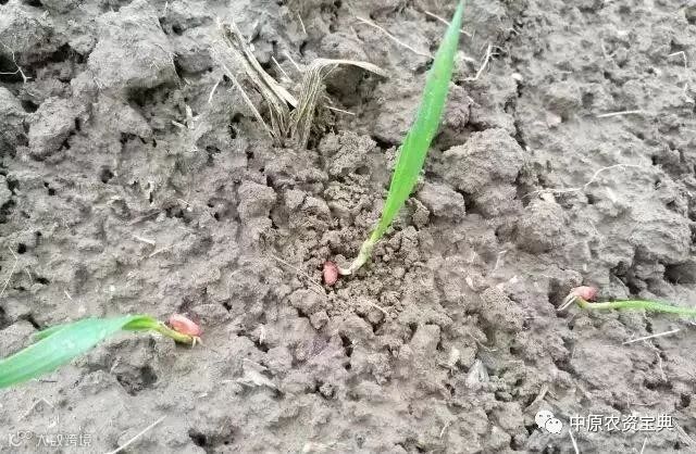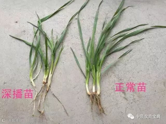 应在墒情适宜时立即用齿耙进行麦地松土、清棵,改善土壤的通透性,促进及时出苗和分蘖。深播的麦苗会出现地中茎,这也是深播麦苗的典型特征。