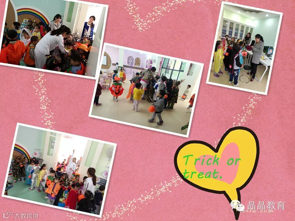 万圣节就在小朋友的欢声笑语中结束了。我们很高兴,他们能勇敢地面对那些恐怖的道具,他们能和别的小朋友一起分享手中的糖果,他们的开心,就是对我们工作最大的奖励。