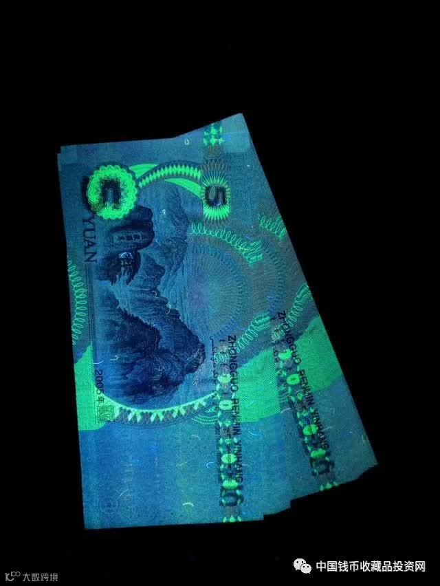 3).05年的5元纸币,荧光灯下美妙绝仑,如下图