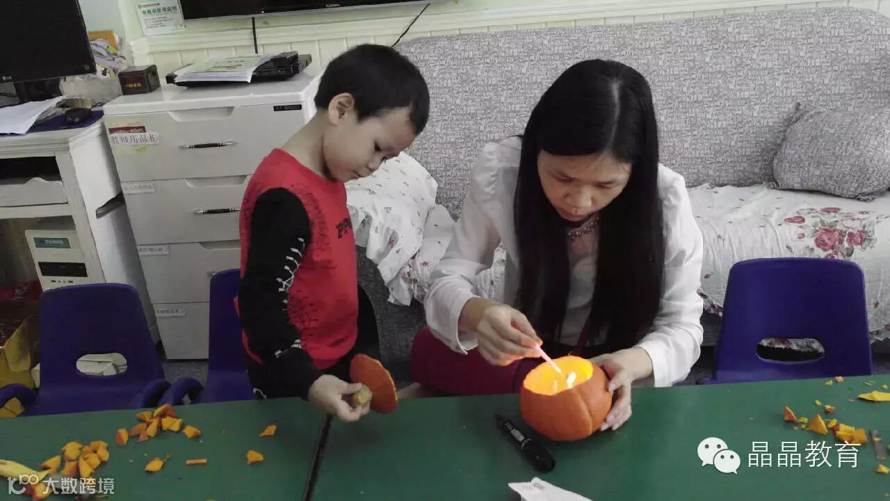 早上孩子们精心的装扮来到幼儿园,每个班的老师们都精心策划了各具特色的亲子手工制作活动,制作南瓜灯、制作面具最为精彩。