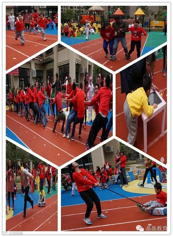 整个活动家长和孩子们都积极参与,入场式的旗队方阵是有大一班的幼儿组成的国旗队、中一班家长的晶晶园旗队和晶晶彩旗队组成,雄赳赳、气昂昂,走出了“我是中国人我爱中国;我是晶晶人我爱晶晶的”气势;游戏项目以集体赛“拔大河”开场,各班奋力拼搏、勇于争锋,各班实力不相上下,体现出强烈的团结意识和正能量,深深的让老师们感到震撼。小组赛“亲子接力赛”“拖小猪”和“小小镖师”在竞赛的同时也给家长和孩子们搭建了互动的平台,促进了孩子和家长之间的感情,很多家长表示“很久没有这么开心,很久没有和孩子们这么玩了”。