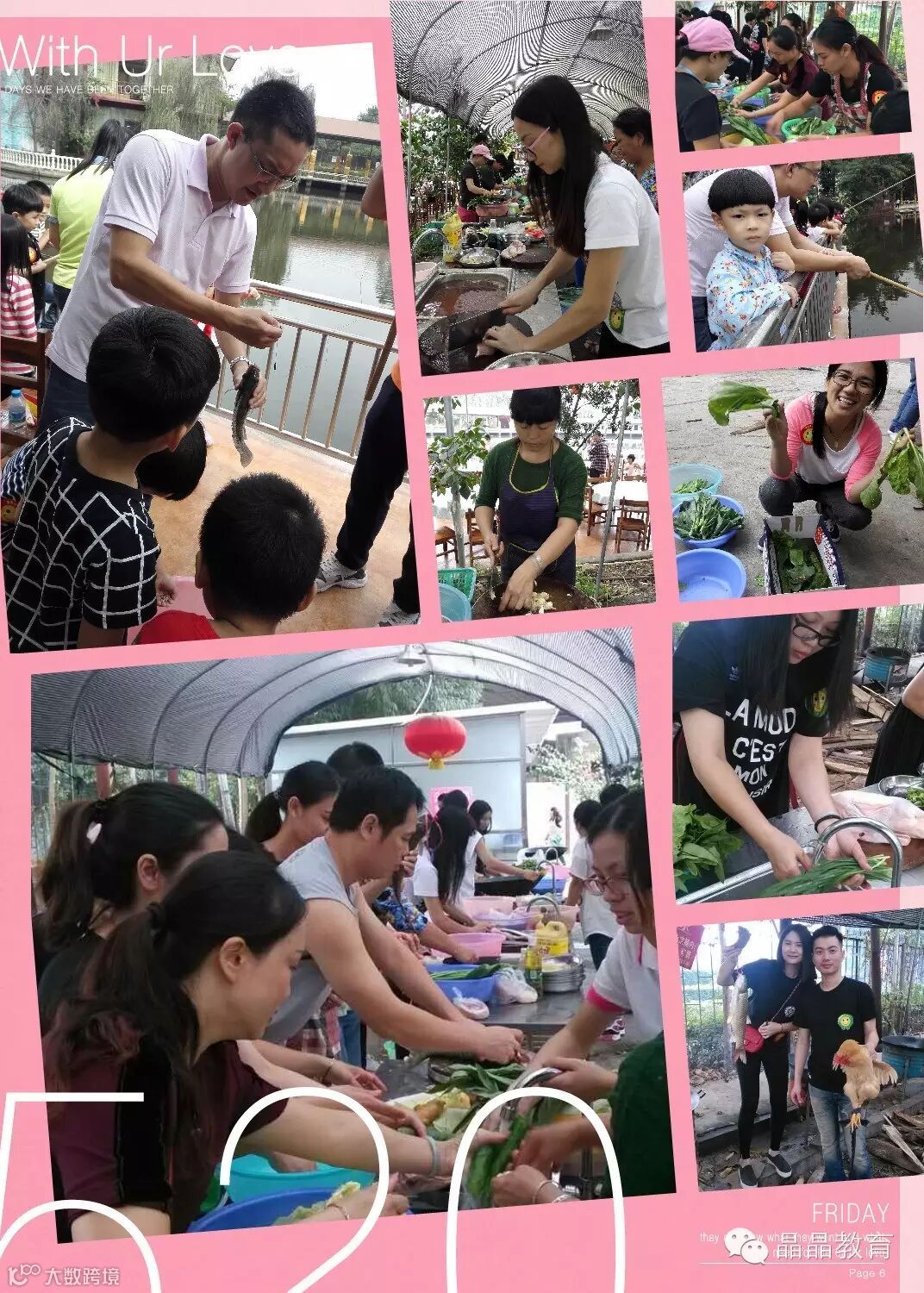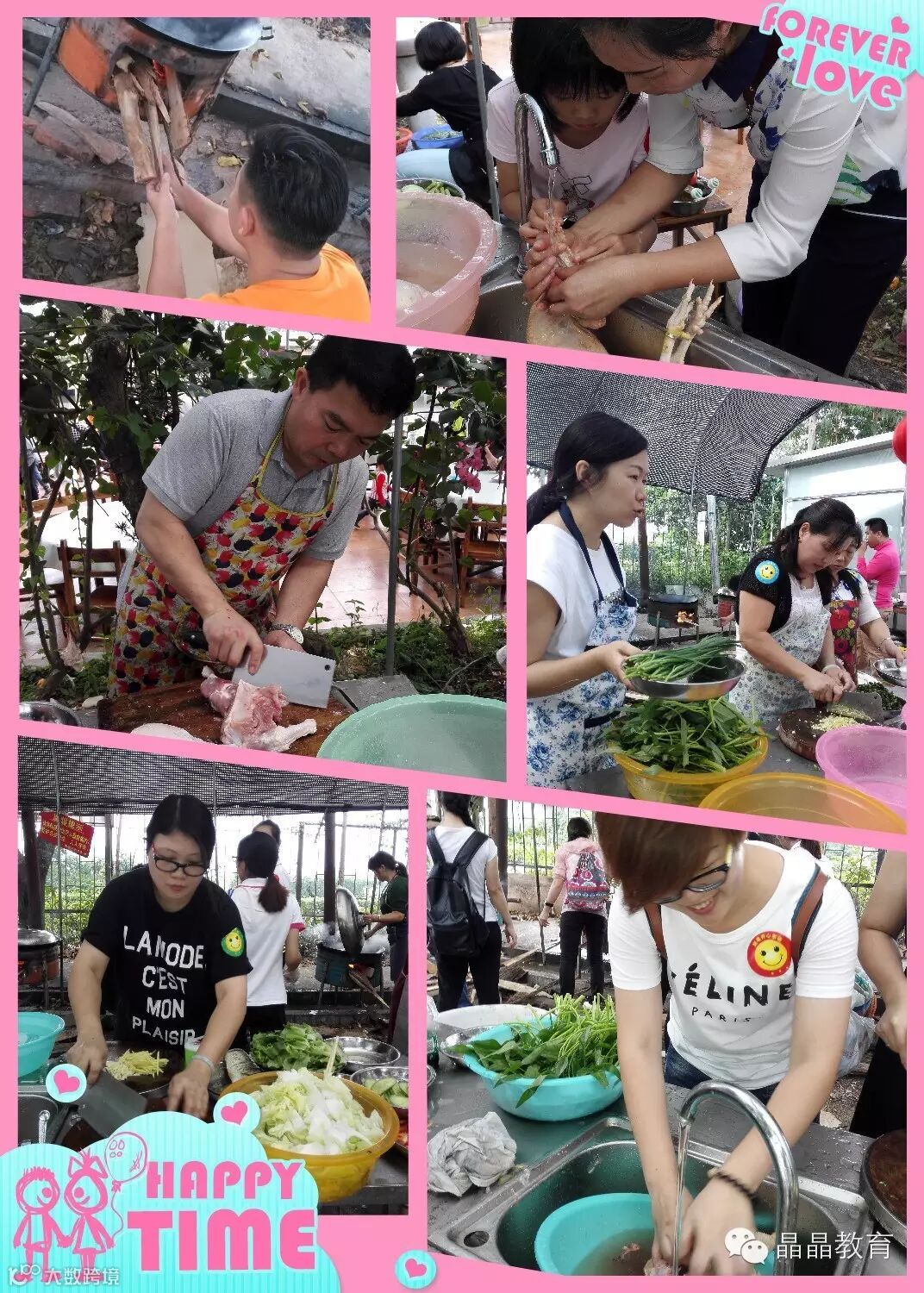 一大早, 在各班教师的带领下,家长和小朋友们来到了深圳市光明农场开心农庄,开始了一天的亲子野炊活动。野炊开始了,大家分工协作,临时组合的一个个小组配合默契,有的负责去抓鸡,有的负责去抓鱼,有的负责去摘菜,有的负责洗菜、烧火、包饺子……总之,每个人都是忙忙碌碌的,小朋友们也学起了包饺子。家长们更是各展厨艺,将野炊活动推向了高潮。不一会儿,菜和饭都烧好了,大家欣喜地把菜端到桌上,并盛起香喷喷的白米饭,细细地品味每一道菜,每一口饭,因为大家是在品尝自己的“劳动成果”,大家一边品尝这些味道特别“鲜美”的菜,一边谈着炒菜前后发生的各种趣事,由衷地感到一种快乐,沉浸在了享受美味之中……小朋友们吃着、玩着、笑着、跳着,共同创造着快乐,分享着快乐!吃饱喝足后,教练哥哥还带大家玩起了踩汽球和拔河比赛,有些小朋友还玩起了亲子踩单车和陶泥,大家沉浸在欢乐的海洋中。