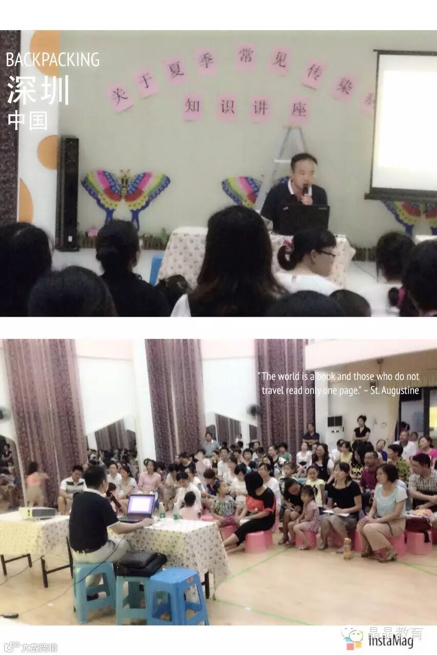 深圳六月的气候多变且干燥,呼吸道黏膜的抵抗力降低,容易感染呼吸道传染病,也是疱疹性咽峡炎、手足口等传染病的发病高峰季节。晶晶中海康城幼儿园针对此情况于2015年6月3日晚19:30分特邀请深圳市龙岗区妇幼保健院儿保科卫医生来我园对家长开展“儿童常见病多发病的知识讲座,”。