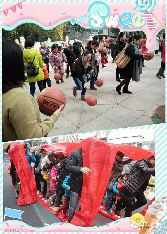 在活动中,幼儿展示《篮球操》表演,与父母一起跳《青春修炼手册》、《便利贴》、《爱的抱抱》等亲子律动,由此将活动推向高潮,之后,家长又与宝贝一起玩《好玩的垫子》、《钻山洞》、《鸡毛信》、《花样玩圈》、《跳竹竿》等亲子游戏。使幼儿不仅体验到活动的乐趣,更加增进了孩子与老师、与与父母间的情感。