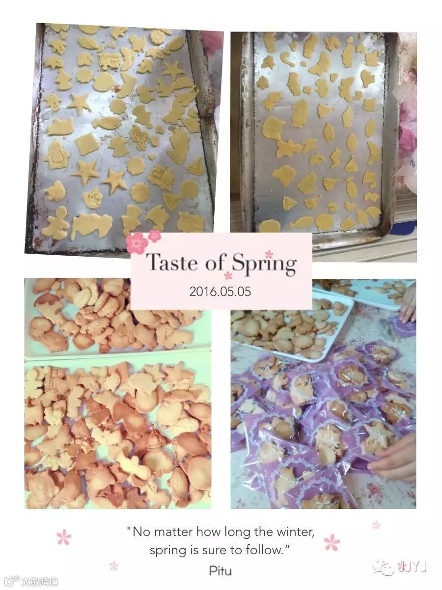 当孩子们看到自己制作的小饼干,刹那间,一片欢呼雀跃。饼干模里的饼干显出不同的颜色,透着诱人的香味,每个饼干都极具特色、美味和个性的完美体现。孩子们笑了,爱不释手的捧着自制的小饼干,舍不得马上吃掉,向大家炫耀自己亲手制作的饼干。