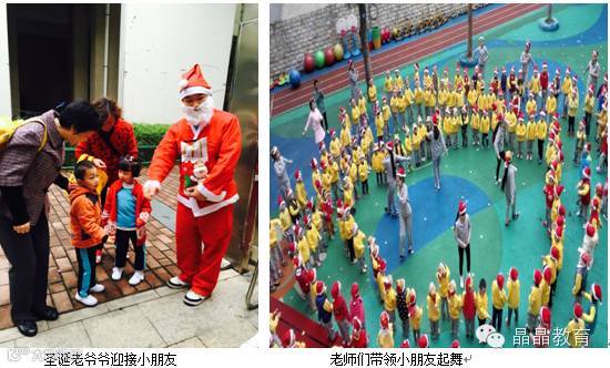 随后,全园的小朋友带上可爱的圣诞帽来到了操场。在老师的带领下,欢乐地跳起来圣诞狂欢舞。伴随着欢快的圣诞音乐,仿佛所有人都容身于快乐的海洋一般。跟着,圣诞老人也加入欢乐了队伍,在美好的音乐声中,给孩子们送上礼物和祝福。