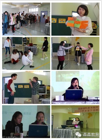 上周集团国际部组织团队到武汉进行英语常规工作、外教管理、英语新教材解读和英语环境布置、童话剧的创编培训。为期一周的培训活动,从蹲班观察到中外教师分别谈话以及集中培训等多种形式,让华中地区的中外英语教师了解晶晶文化,了解晶晶的英语教学观念,增进感情,统一管理模式,辐射教学效益,达到步调一致,共同前进的态势。武汉地区教科研中心的唐主任、各园的业务园长、英语教师、外籍均参加了本次培训活动,让我们一起走进培训的现场: