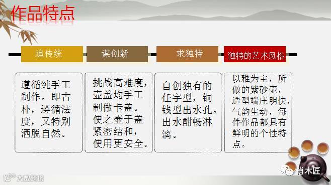 曾多次参加业内展出并获奖,个人紫砂作品及行业论文被多家报刊杂志刊登,深受紫砂收藏家的青眯。