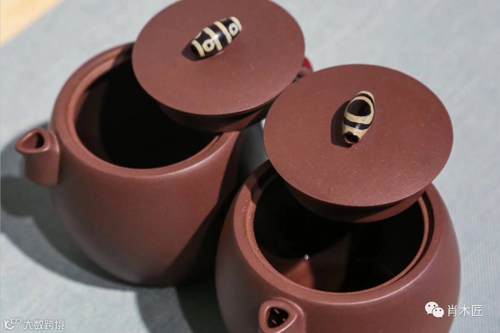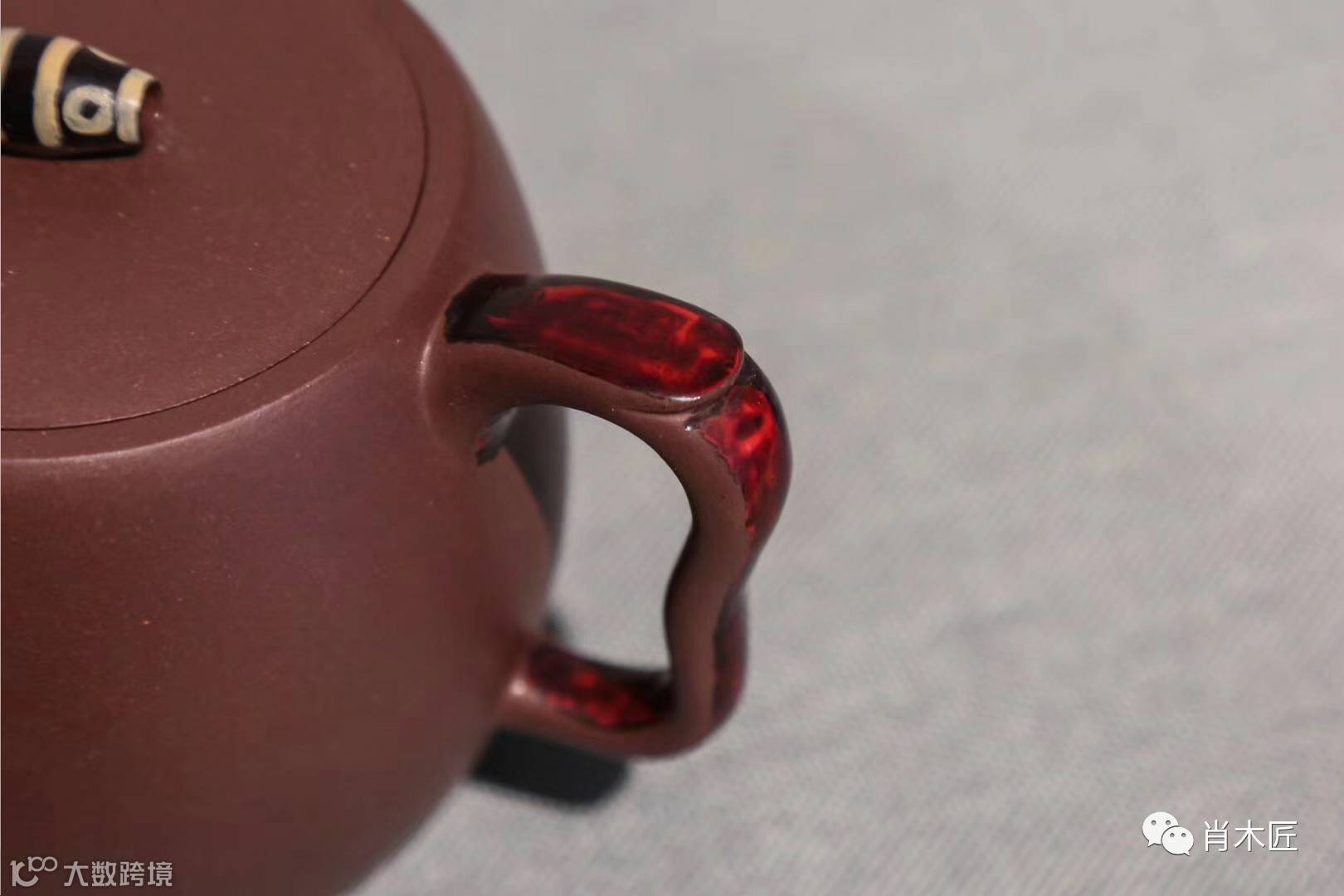 壶钮与壶把处采用我国传统大漆工艺,钮作天珠,结合紫砂,耐磨耐热