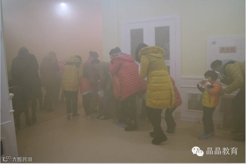 3:00消防演练正式开始,为了使演练现场更逼真,楼层放置了烟雾弹,并响起了紧急警报声。在刘园长和李警官的现场指挥下,全园师生及家长双手捂着口鼻、弯腰靠墙迅速从两个楼梯逃生,安全疏散到空旷的操场上。整个过程紧张而有序。