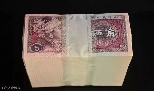 原刀原捆的纸币价格高,自然就会有人动手脚,咱们在收藏购买的时候要注意不要买到下水的。刀货下水不是指整个放水里洗过,大部分是局部有黄斑用药水涂抹;还有边角黑,用药水洗过边角;当然整捆整刀下水的也有这种情况。