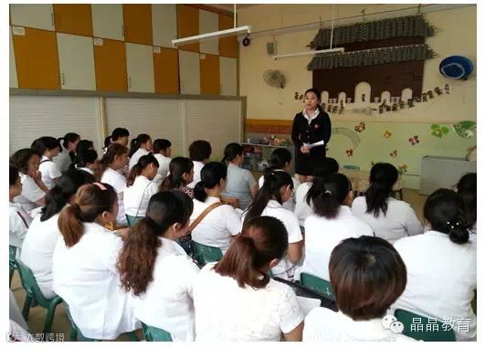 晶晶锦绣幼儿园后勤园长李云丹女士给所有保育员进行了一日工作流程的专业培训,极大的提高了保育老师的专业技能和整体素质。
