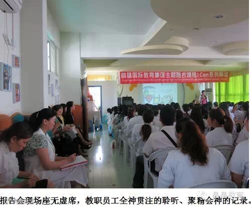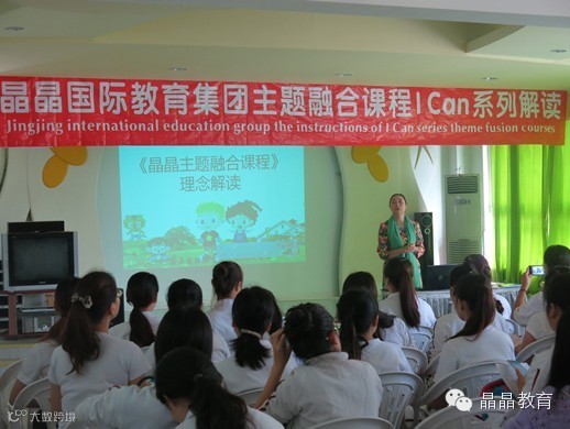 晶晶教科研中心的谭总以及课程部王主任运用风趣诙谐、幽默睿智的授课方式营造了一种轻松愉悦的学习氛围,深入浅出,通俗易懂的给教师们专业而系统的解析了《晶晶主题融合课程》中精髓理念。