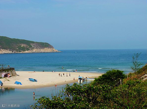 在这里可以看到如何造游艇——在沙滩边上,你可以看到的是放在岸上的一艘近两层楼高的游艇,后面是游艇厂,对面就是香港的平洲岛。这里的沙质一般,但沙滩、海水、及腹地的植被都丝毫未遭到破坏。岸边的木麻黄林和远处的青山可以让你感觉到到山海风光。