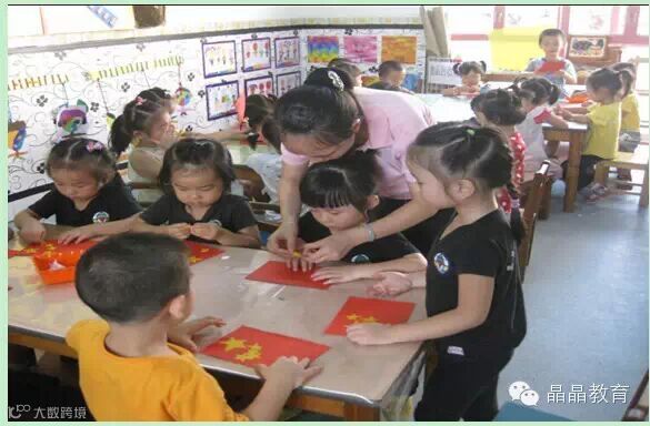 中城康桥晶晶幼儿园各班开展了丰富多彩的教学活动。如:小班老师组织幼儿认识国旗,给国旗涂色;中班幼儿在制作国旗前,教师先引导幼儿观察五颗星的位置,然后运用吸管,将旗帜固定到吸管上,教师没有直接介绍方法,而是让幼儿自己动手尝试探索出好的方法。