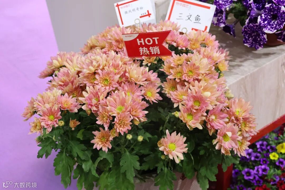 今年上海展会,我们特别策划展出盆栽菊新系列「泡泡菊」,「泡泡菊」是我们在2022年已经推出的系列,绝美的花型,靓丽的颜色,一经推出就受到了关注和好评。当然,我们还为泡泡菊制定了相关的营销点,以6个不同的花色对应6种不同口味的饮料,化观感为口感,加深产品的记忆点,产生消费联想。