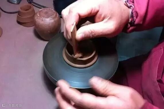 5、上(上大只,上脚大,上子口)。把壶的颈与壶身粘合起来叫上大只。上脚大,就是把壶脚圈与壶身连接起来。上子口,就是把壶盖与子口连接起来。